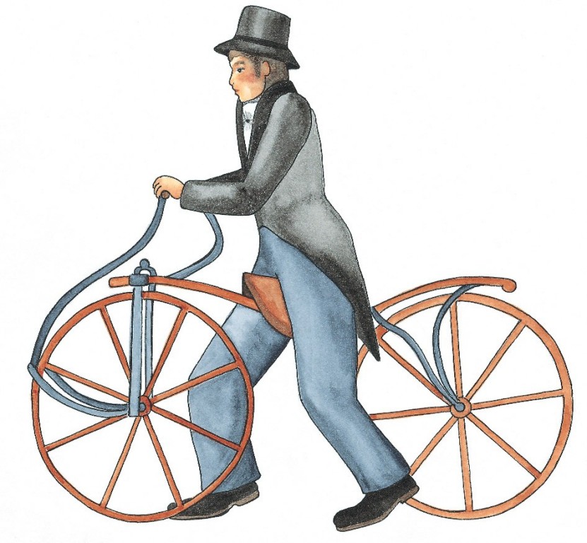 1817 erfand C. Freiherr Drais von Sauerbronn die „Laufmaschine“ (Draisine, Straßenverkehr); 1861 entstand das Velociped (Hochrad) von P. Michaux (Frankreich); 1884 bauten Starley und Sutton (England) das Niederrad mit Kettenübersetzung zum Hinterrad; 1888 benutzte J. B. Dunlop (Irland) erstmalig Luftreifen; 1896 erhielt das Fahrrad die Karbidlaterne; 1904 erfand Ernst Sachs die „Torpedo“-Freilaufnabe und die Rücktrittbremse; 1920 kam die elektrische Fahrradbeleuchtung auf. Nach 1945 verbreitete sich das Fahrrad mit Hilfsmotor.