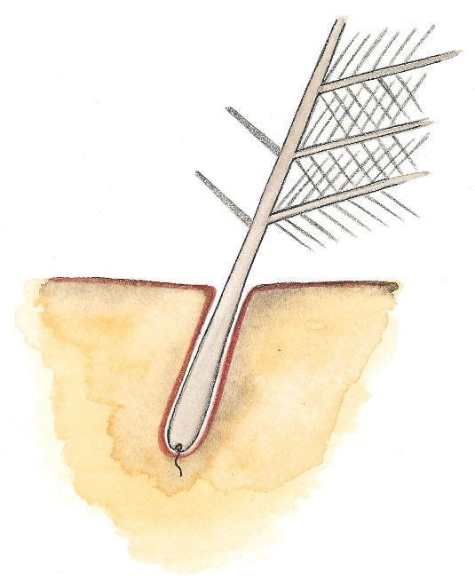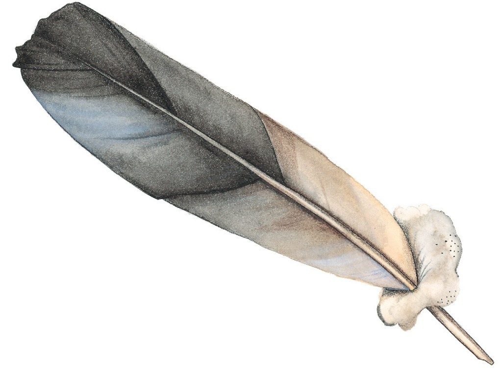 Von einer festen Achse (Schaft, oberer Teil des Federkiels) gehen zweizeilig seitliche Äste aus, die ihrerseits feine Fortsätze tragen, die sich durch Häkchen fest zur Federfahne zusammenschließen (nicht bei Daunen). Die Feder ist mit dem unteren Teil des Federkiels, der hohlen Federspule, in der Haut (Federbalg) verankert.