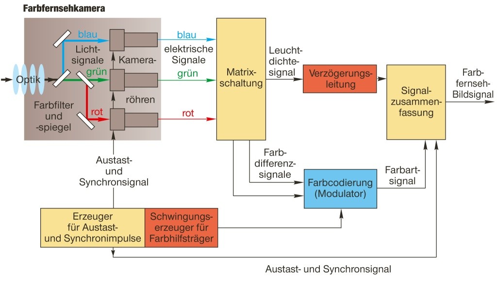 die Übertragung von sichtbaren Vorgängen (Bildern) über Kabel, terrestrischen Funk oder Satellitenverbindungen.