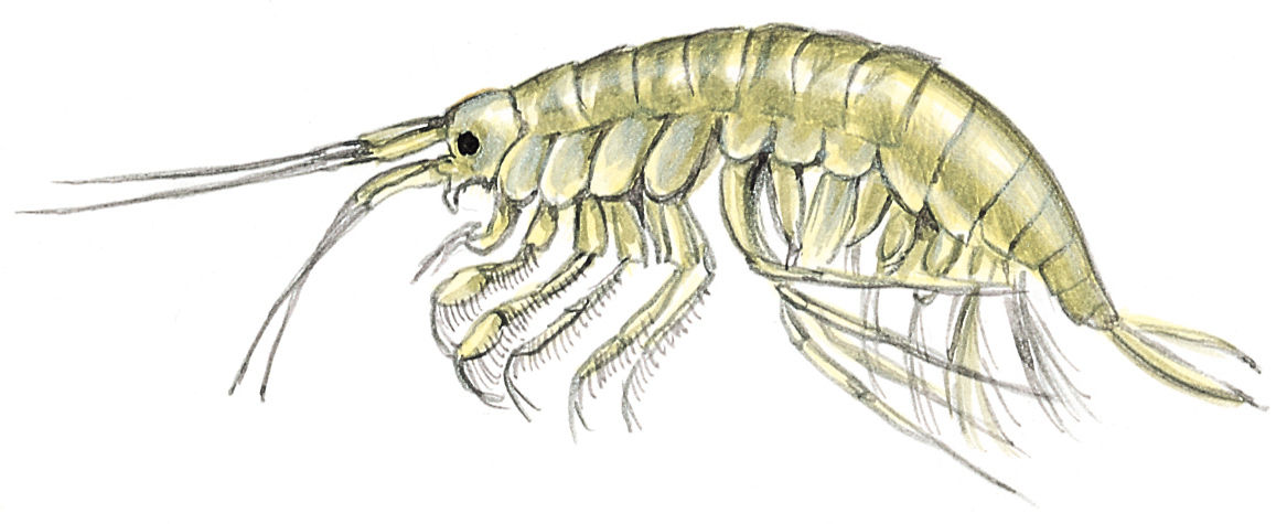 Manche Flohkrebse leben in der Schirmglocke von Quallen oder schwimmen, wie die abgebildete Art Phronima sedentaria, in der leeren Hülle von Manteltieren, die sie ausgefressen haben.