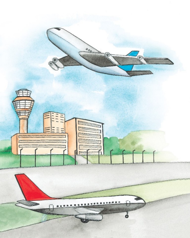 Flughafen mit Tower, Terminal, Start-/Landebahn