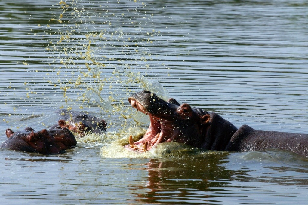 Flusspferde verbringen den ganzen Tag in Gruppen im Wasser, erst des Nachts gehen sie an Land, um zu weiden.