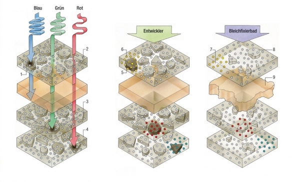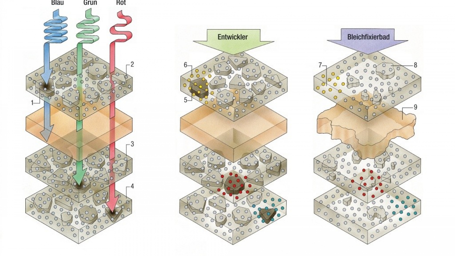 ein optisch-chemisches Wiedergabeverfahren, das auf der Lichtempfindlichkeit der Halogensilbersalze beruht; es umfasst drei Prozesse: 1. Aufnahme (optische Bildentstehung), 2. Negativprozess (chemische Bildentstehung), 3. Positivprozess (Wiedergabe).