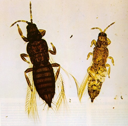 Die Fransenflügler sind nur wenige Millimeter große Insekten, die durch einen langen Haarsaum an den Flügeln auffallen. Die Tiere können bei Massenbefall an Kulturpflanzen ernsthaften Schaden anrichten.