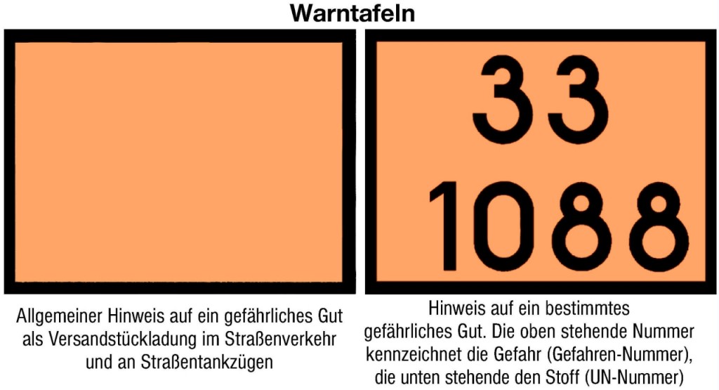 Gefahrzettel; WarntafelnGefahrensymbole: Transportwesen