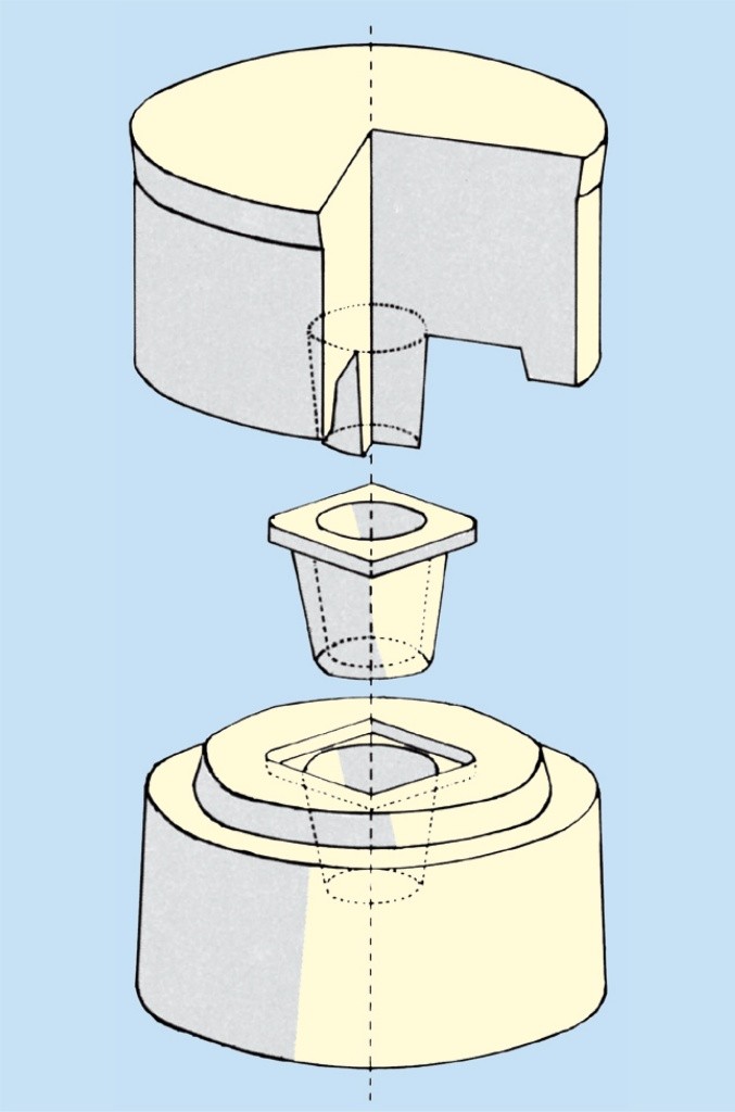 metallische, meist zweiteilige Hohlform, in die ein in der Regel durch Erwärmen leicht formbarer Rohling in einer geeigneten Schmiedemaschine (Fallhammer, Lufthammer, Gesenkhammer, Spindelpresse) hineingeschlagen wird. Geschlossene Gesenke formen das ganze Stück, offene nur den Kopf einer Stange, deren Ende zur Öffnung herausragen kann.