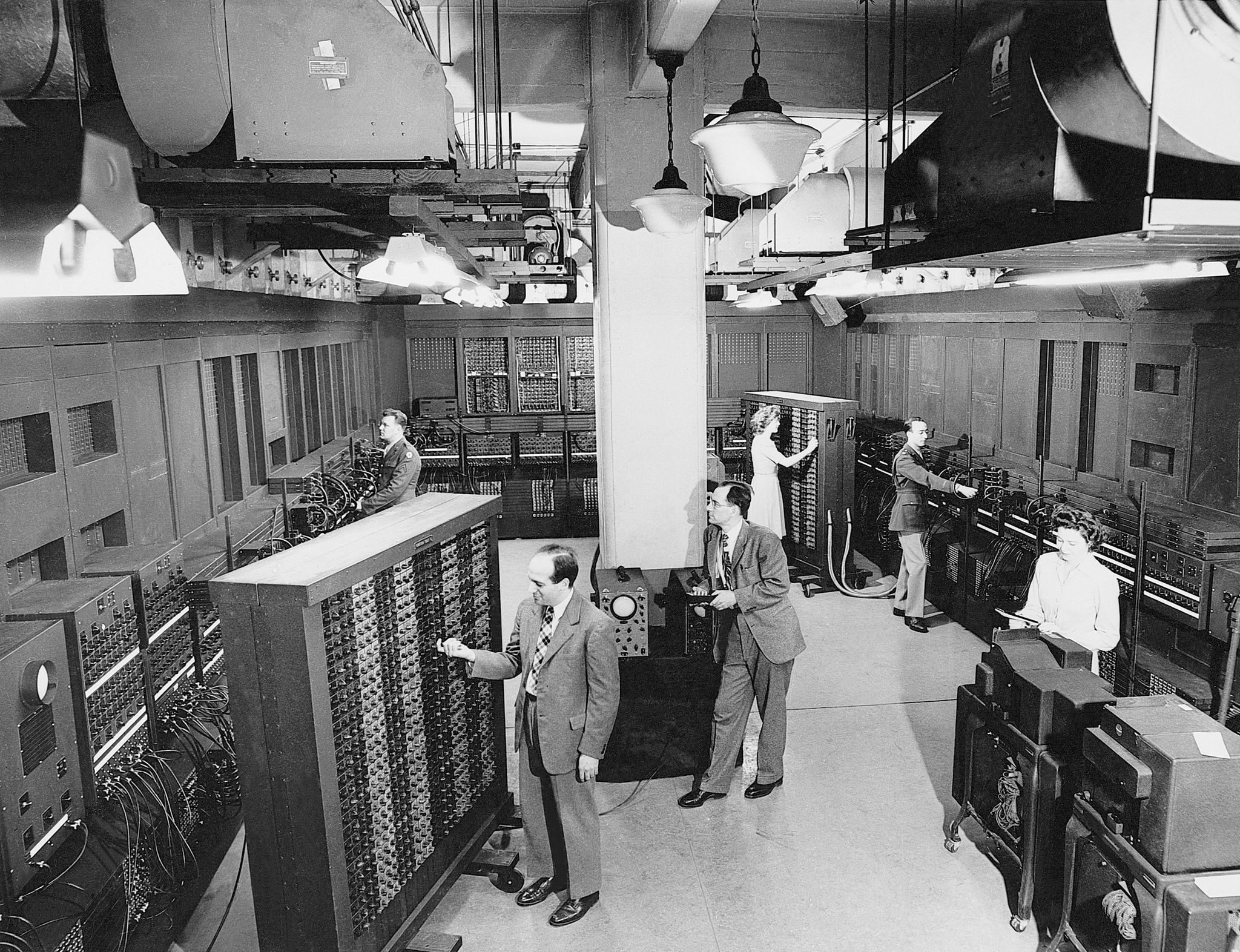 J. P. Eckert, Goldstine und J. W. Mauchly bauten zwischen 1943 und 1946 an der Pennsylvania University den ENIAC (»Electronic Numerical Integrator and Computer«), eine mit 18 000 Röhren ausgestattete Rekonstruktion eines Relaisrechners.