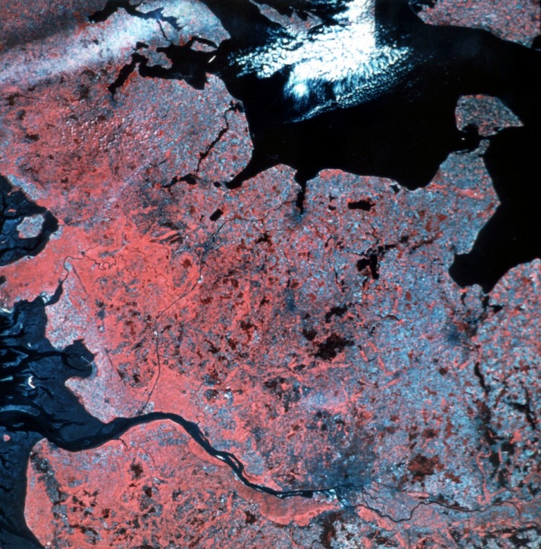 Landsat-Bild der deutschen Nord- und Ostseeküste mit Elbmündung und Hamburg