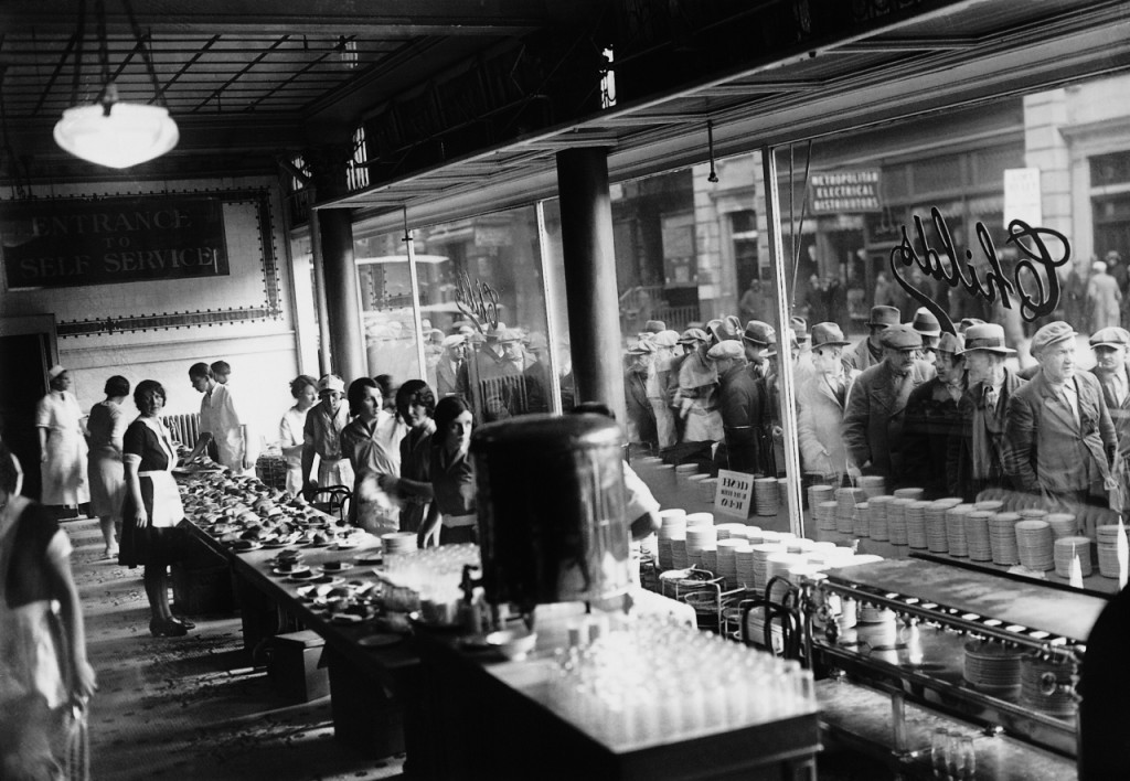Die Heilsarmee ist zwar militärisch organisiert, verfolgt aber nur sozial-karitative Zwecke. Hier eine Essensausgabe an Arbeitslose in der West 17. Straße, New York, 1930.