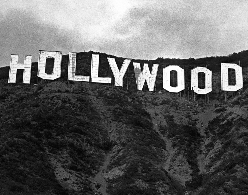 Blick auf die Hollywood-Inschrift auf dem Felsen über dem Stadtteil von Los Angeles in Kalifornien (USA)