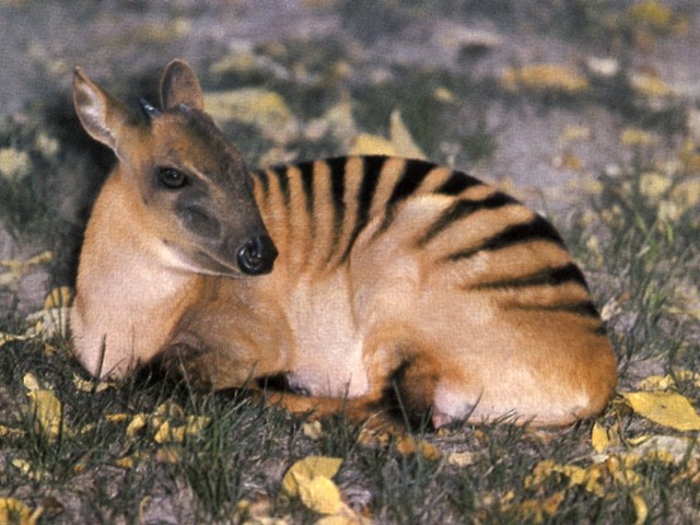 In Liberia lebt der Zebraducker mit den schwarzen Querstreifen über dem rotgelben Fell.