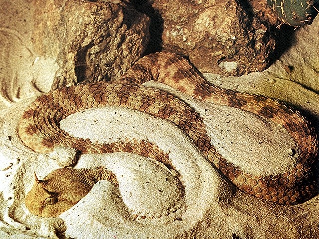 Die Hornviper (Cerastes cerastes) gehört zu den Schlangen, die Trockengebiete bewohnen. Sie bevorzugt dabei lockeren Buschbestand. Wie die meisten Wüstenkriechtiere vergräbt sie sich gerne im Sand, der ihr tagsüber Schutz gegen die Hitze und nachts Wärme bietet.