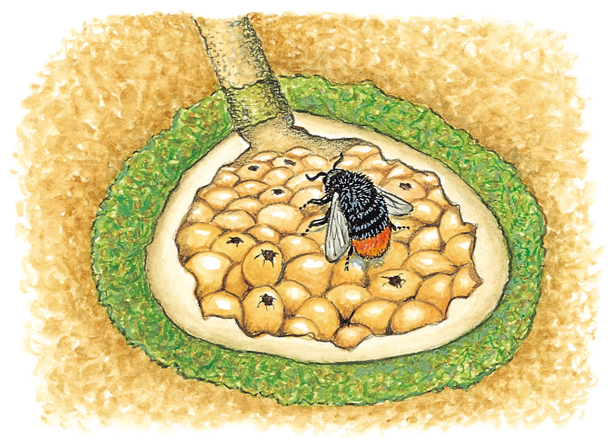 Viele Hummelarten besitzen Mundwerkzeuge, die vor allem durch eine lange Zunge ausgezeichnet sind. Mit dieser Ausstattung sind sie in der Lage, eine Vielzahl von Blüten auszubeuten. Neben Nektar tragen sie auch Pollen ein.