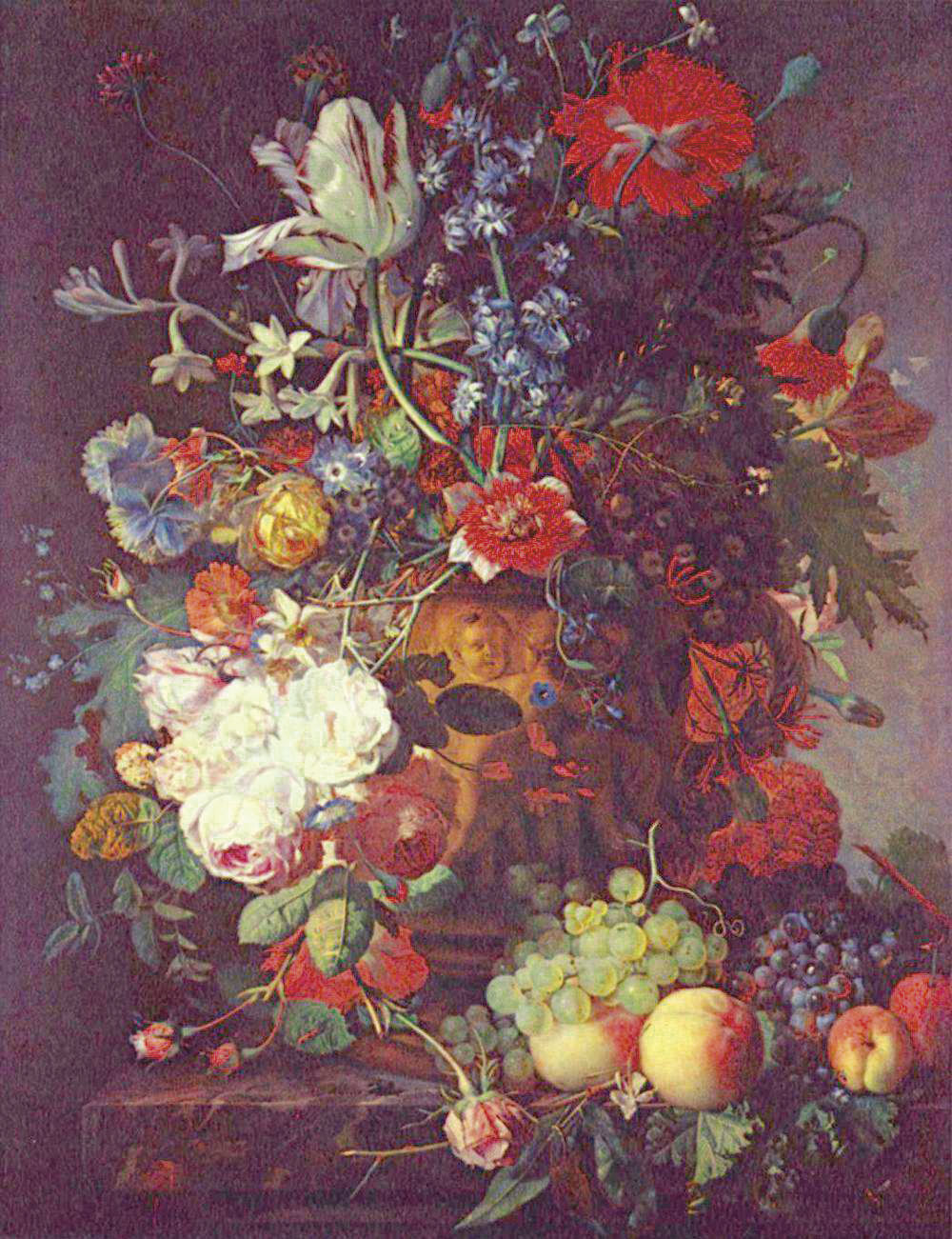»Blumenschale« von Jan van Huysum, Anfang des 18. Jahrhunderts. Wien, Kunsthistorisches Museum