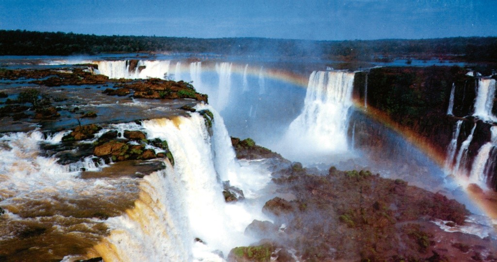 ]linker Nebenfluss des Paraná, 1320 km; entspringt im Küstengebirge der Serra do Mar (Südbrasilien), Grenzfluss im Unterlauf zwischen Brasilien und Argentinien; bildet die hufeisenförmig angelegten, 2,7 km breiten Iguaçufälle, 22 größere und rund 250 kleinere Fälle (Fallhöhe bis rund 70 m); auf der argentinischen und brasilianischen Seite Nationalpark (Weltnaturerbe seit 1984).