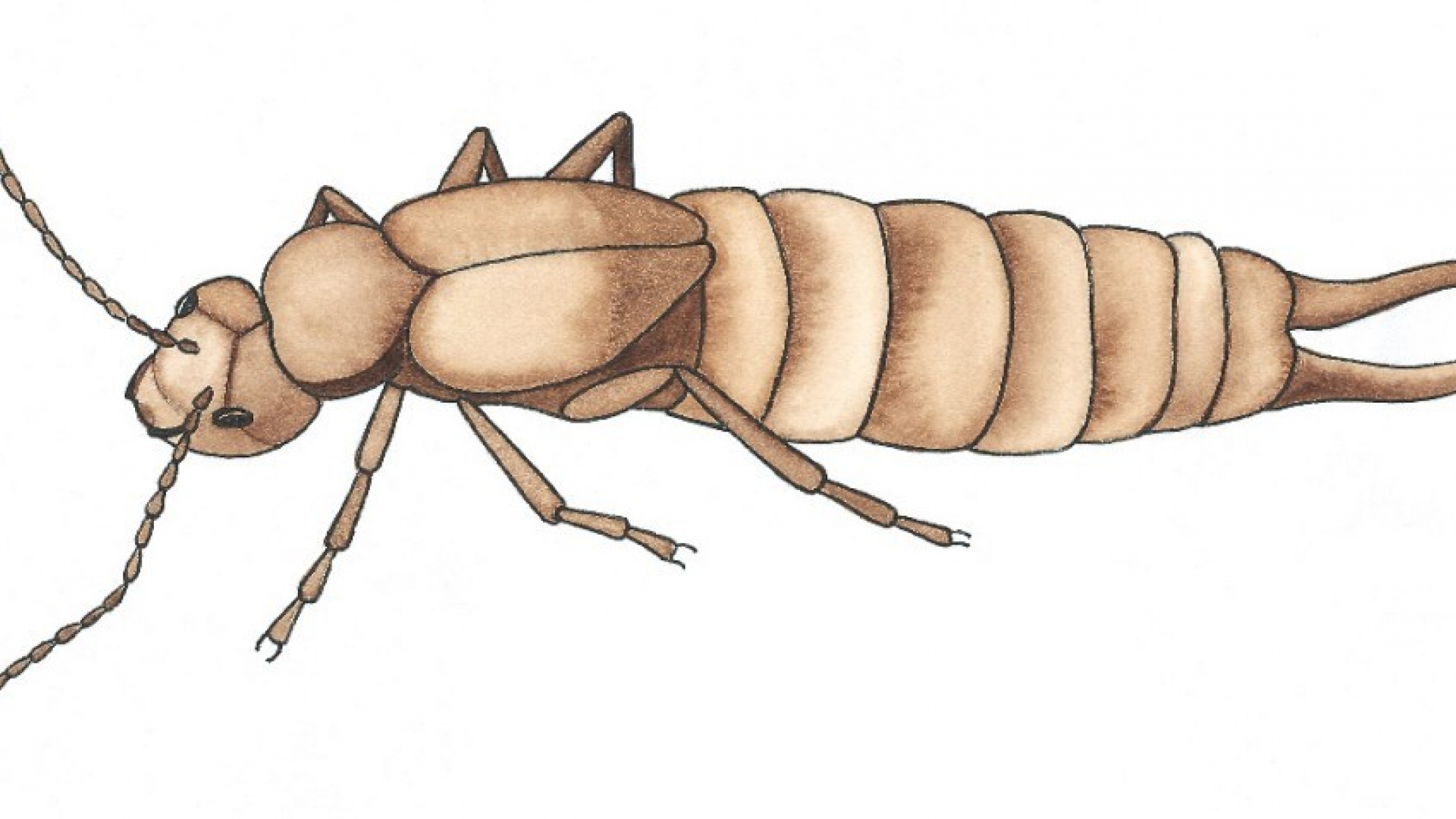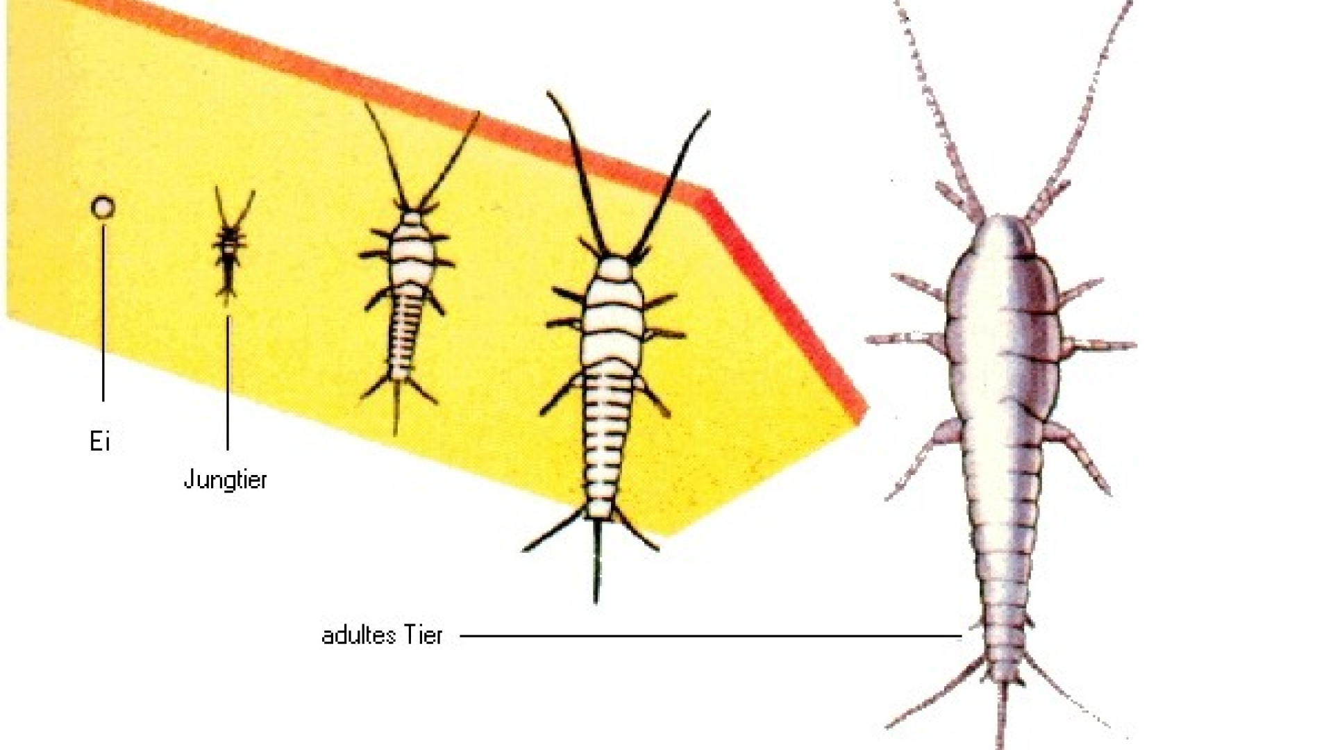 ausgewachsenen Tier, ist aber bis zur 6. und letzten Häutung flügellos.