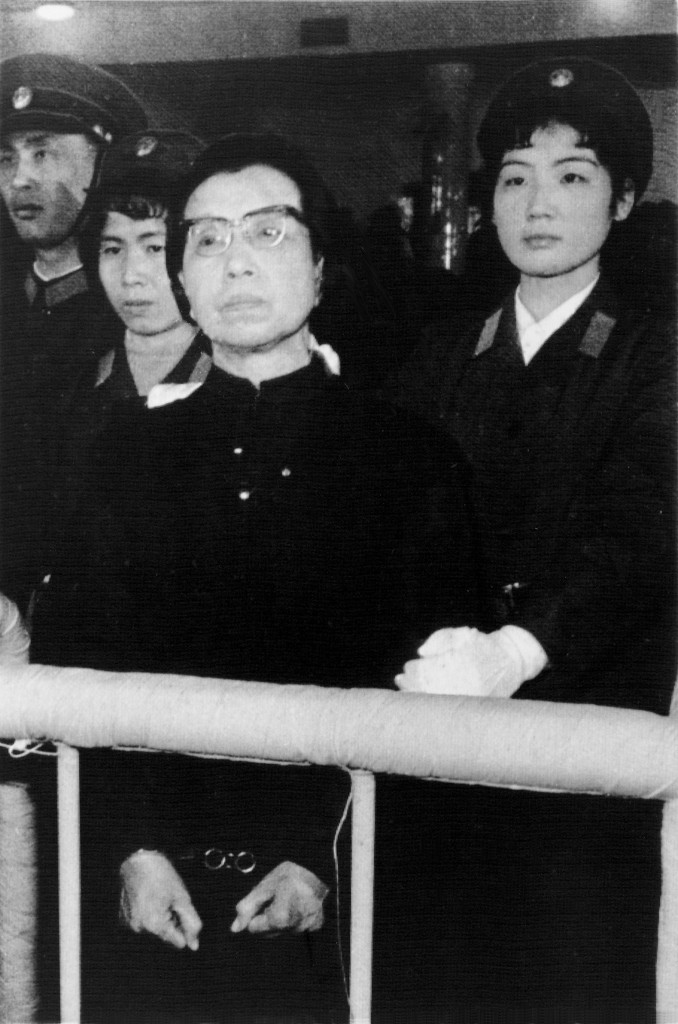 Jiang Qing (Mitte) bei der Urteilsverkündung am 23. Januar 1981: Die Witwe von Mao Zedong wurde als Mitglied der so genannten Viererbande wegen »konterrevolutionärer Bestrebungen« zum Tode verurteilt, 1983 zu lebenslanger Haft begnadigt.