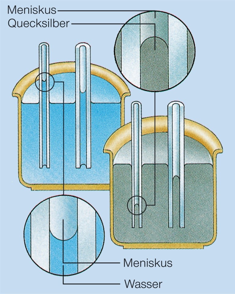 Kapillarität bei Wasser und Quecksilber
