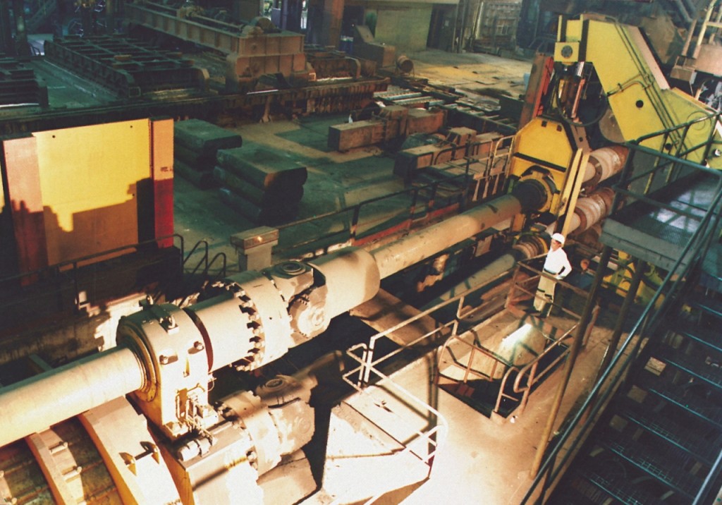 Die schwere Gelenkwellen dient zum Antrieb einer Grobblech-Walzwerkanlage.