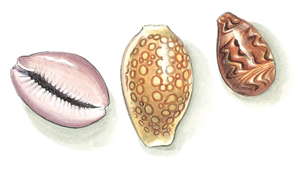 Zu den schönsten Schnecken gehören die Porzellanschnecken (Cypraeidae), deren Gehäuse meist bunt gemustert ist und wie mit Lack überzogen glänzt wie hier bei der Tigerschnecke (Cypraea tigris).