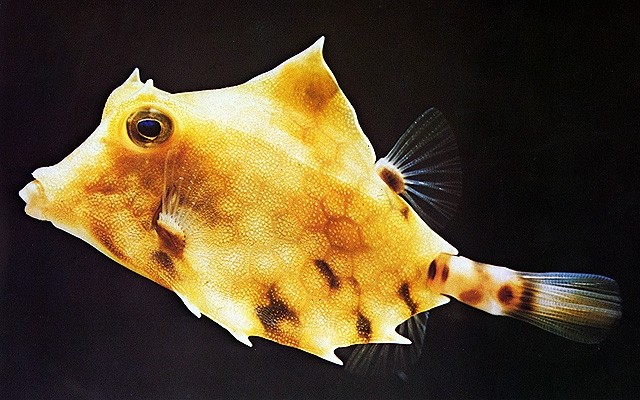 Während die Haut der meisten Knochenfische Schuppen aufweist, ist der Kofferfisch durch einen festen Rumpfpanzer aus vieleckigen Knochenplatten geschützt.