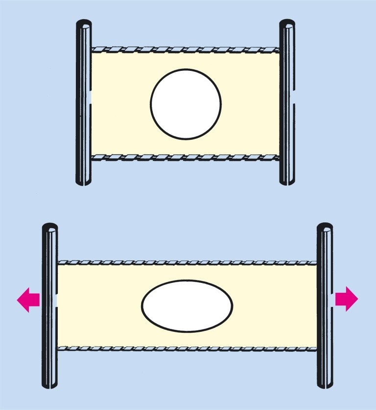 Zusammenziehung auf kleineren Raum oder Querschnitt; z. B. die Kontraktion des Querschnitts eines Flüssigkeitsstrahls, der aus einer scharfkantigen Öffnung austritt, oder die Querkontraktion eines Körpers, der in Längsrichtung elastisch gedehnt ist. – Lorentzkontraktion: Relativitätstheorie.