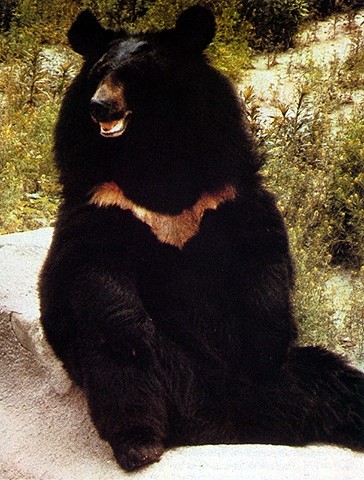 Das weiße Abzeichen auf der Brust in Form eines V oder Y ist ein typisches Kennzeichen für den Kragenbären.