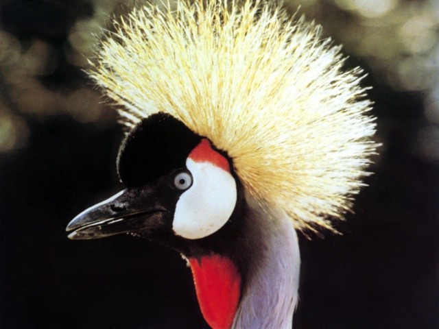 Der afrikanische Kronenkranich ist an seinem für Kraniche sehr bunten Gefieder leicht zu erkennen. Auffallend sind besonders die buschige Federkrone und die weißen Kopfseiten.