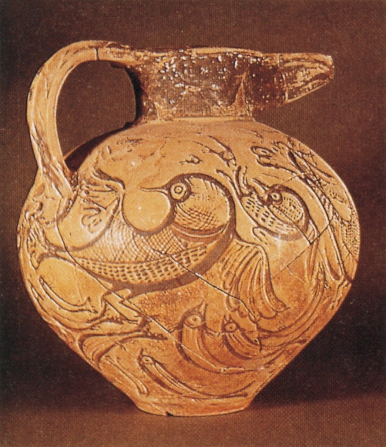 Die abgebildete Kanne mit Vögeln entstammt dem jüngeren Palaststil der kretisch-mykenischen Kultur. Heraklion, Archäologisches Museum.
