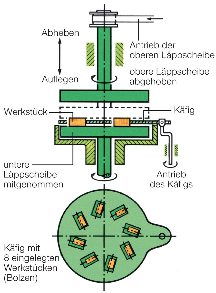 Metalle mit Öl und feinstem Schmirgelstaub maschinell bearbeiten.