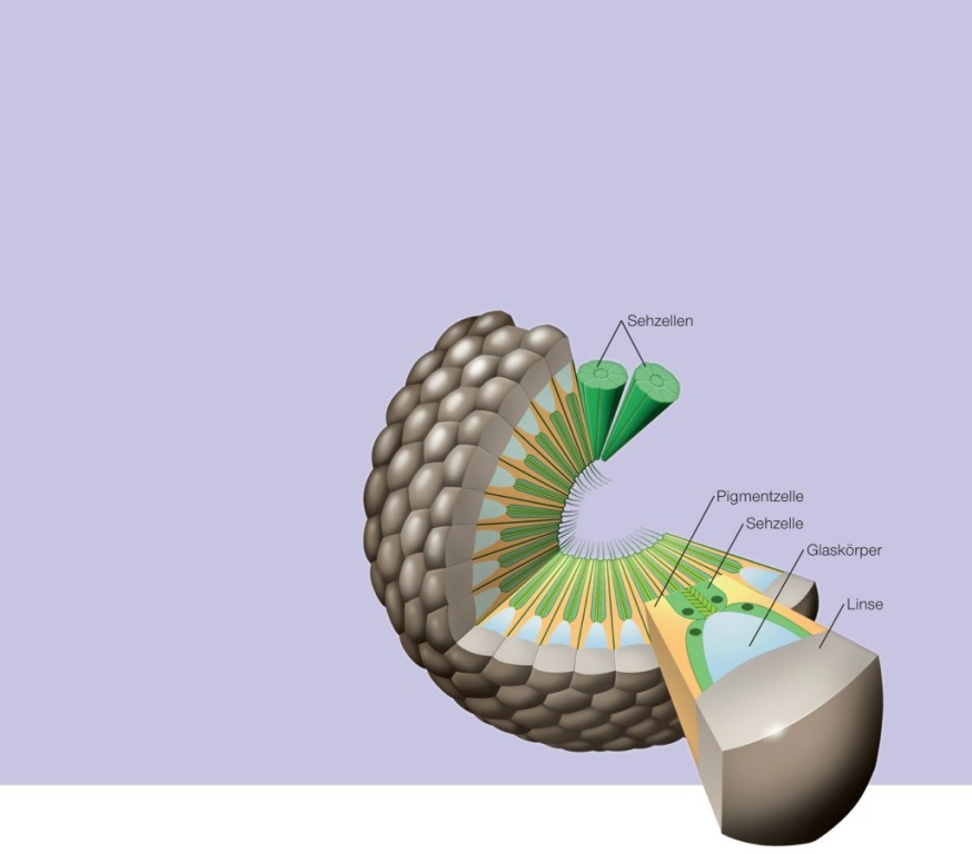bei Tieren und dem Menschen vorhandene Sehorgane, die die Fähigkeit haben, auf Licht zu reagieren. Ursprüngl. findet sich eine allgemeine Lichtempfindlichkeit der Körperoberfläche z. B. bei Hohltieren (außer Medusen), Muscheln und Insektenlarven. Bei vielen Tiergruppen sind die Lichtsinnesorgane aber sehr komplex aufgebaut: Sie bestehen aus lichtempfindlichen Sehzellen sowie vielfach aus Hilfseinrichtungen wie einer Licht sammelnden Linse (Auge).