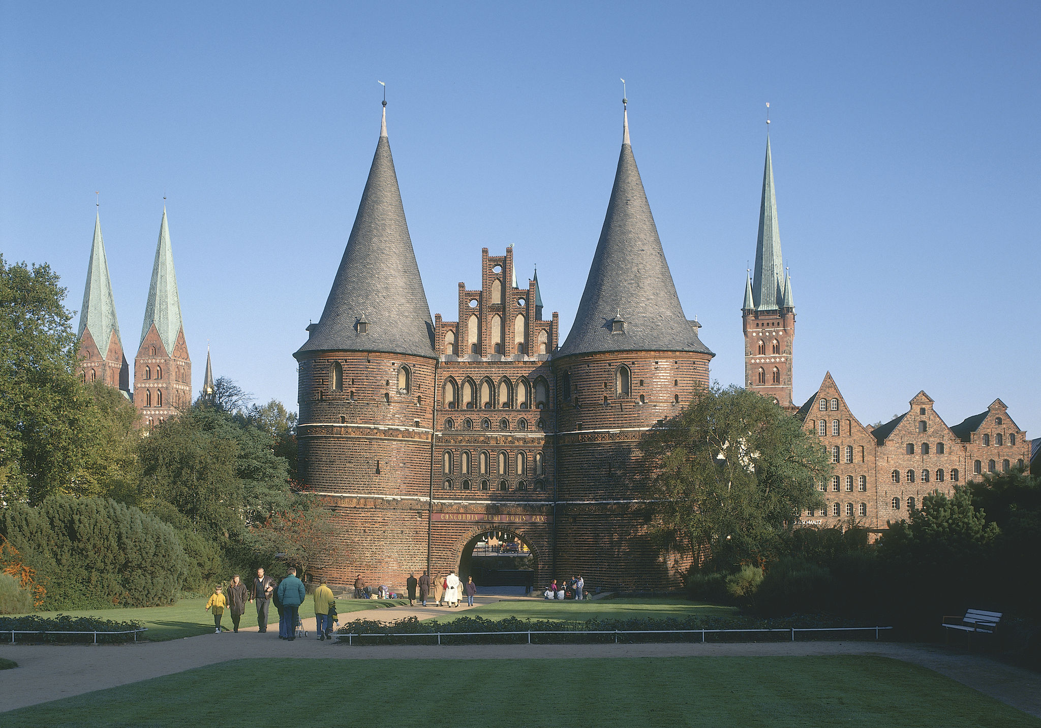 Hansestadt Lübeckkreisfreie Stadt in Schleswig-Holstein, Hafen- und Handelsstadt an der Ostsee (Lübecker Bucht), nahe der Travemündung, 212 000 Einwohner; Universität (1973), Fachhochschule, Musikhochschule; Theater, Museen; in dem von Wasser umgebenen Altstadtoval (Weltkulturerbe seit 1987) sind zahlreiche Baudenkmäler der norddeutschen Backsteingotik vorhanden: Marienkirche (13./14. Jahrhundert), Dom (13. Jahrhundert), Petrikirche (14. und 16. Jahrhundert), Jakobikirche (14. Jahrhundert), Hl.-Geist-Hospital (13. Jahrhundert), Holstentor (1478 vollendet), Rathaus (13.–15. Jahrhundert), Gilde- und Bürgerhäuser (Buddenbrookhaus, Schabbelhaus u. a.); Geburtsort der Brüder T. und H. Mann; größter Ostseehafen Deutschlands, mit Vorhafen Travemünde, Fährverkehr nach Skandinavien; Reedereien, Fischverarbeitung; Maschinenbau, Herstellung von medizinischen Geräten, Nahrungs- und Genussmittelindustrie (Marzipan); Tourismus.