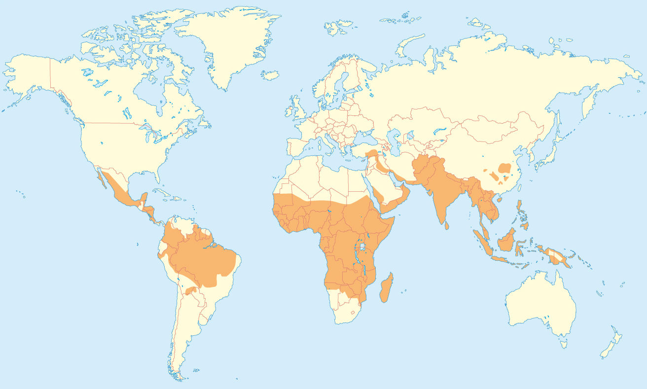 Malaria: Verbreitungsgebiete