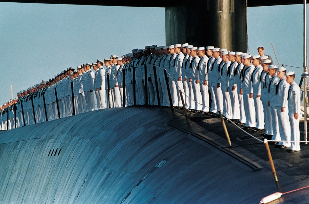Matrosen gedenken 1991 auf dem U-Boot „U.S.S. Nevada“ anläßlich des fünfzigsten Jahrestages der Opfer des japanischen Überfalls auf Pearl Harbor.