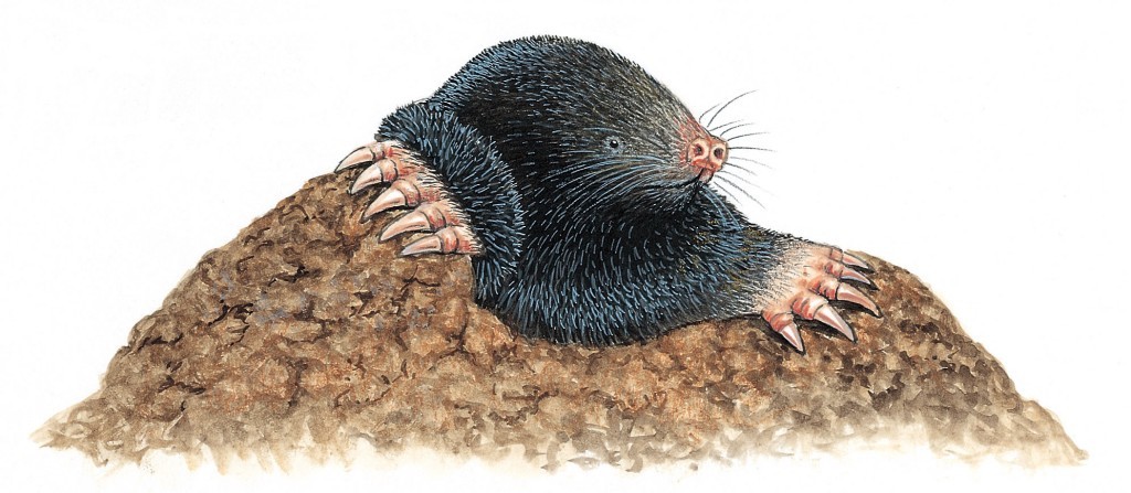 Zum Wühlen im Boden besitzt der Maulwurf mächtige, zu Grabschaufeln geformte Vorderfüße.