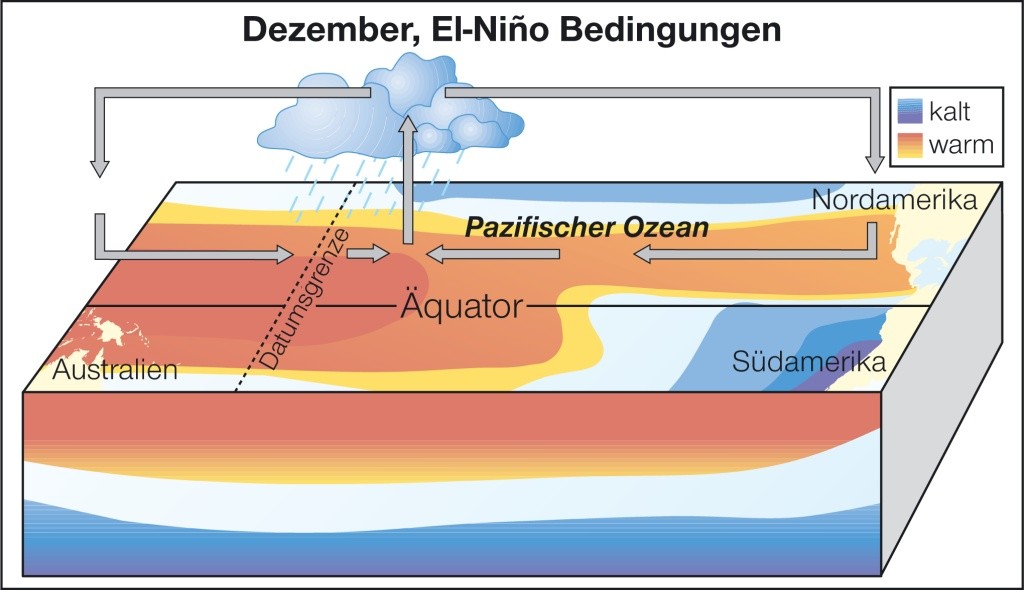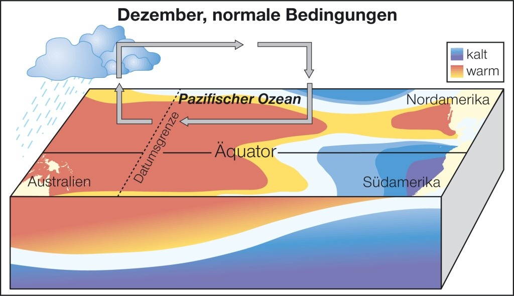 normale pazifische Strömungsverhältnisse im Dezember im Gegensatz zum El-Nino-Phänomen