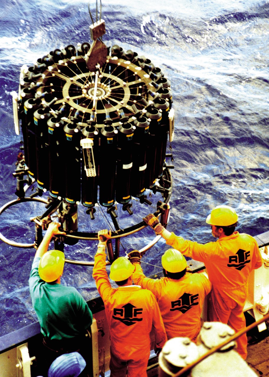 während des Welt-Ozon-Zirkulations-Experiments (WOCE) zu Wasser geht.
