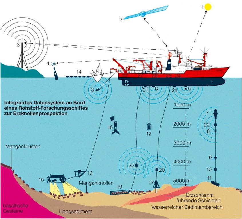 Ausstattung eines Rohstoff-Forschungsschiffs; Manganknollengewinnung