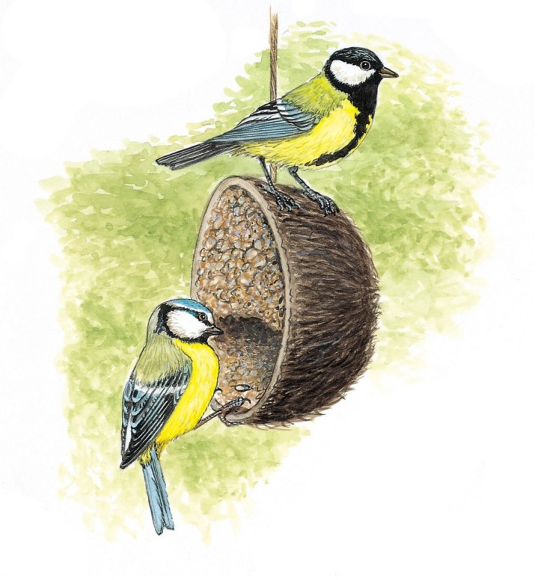 Blaumeise (unten) und die Kohlmeise (oben)