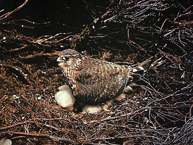 Der Merlin hortet meist am Boden zwischen Heidekraut, Zwergbirken, Farnkraut oder auf Vorsprüngen in steilen Wänden. Er nimmt jedoch auch gerne verlassene Nester von Greifvögeln in Bäumen an.