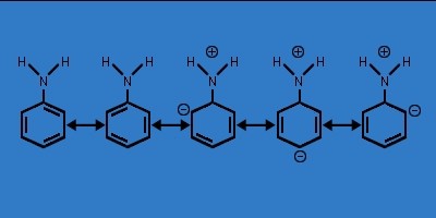 Grenzformeln oder Resonanzstrukturen des Anilins: Die Bindungszustände unterscheiden sich nur in der Elektronenanordnung.