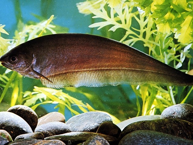 Der Schwarze Messerfisch lebt im Niger-Stromgebiet und ist der einzige Vertreter seiner Gattung, der keine Rückenflosse besitzt.