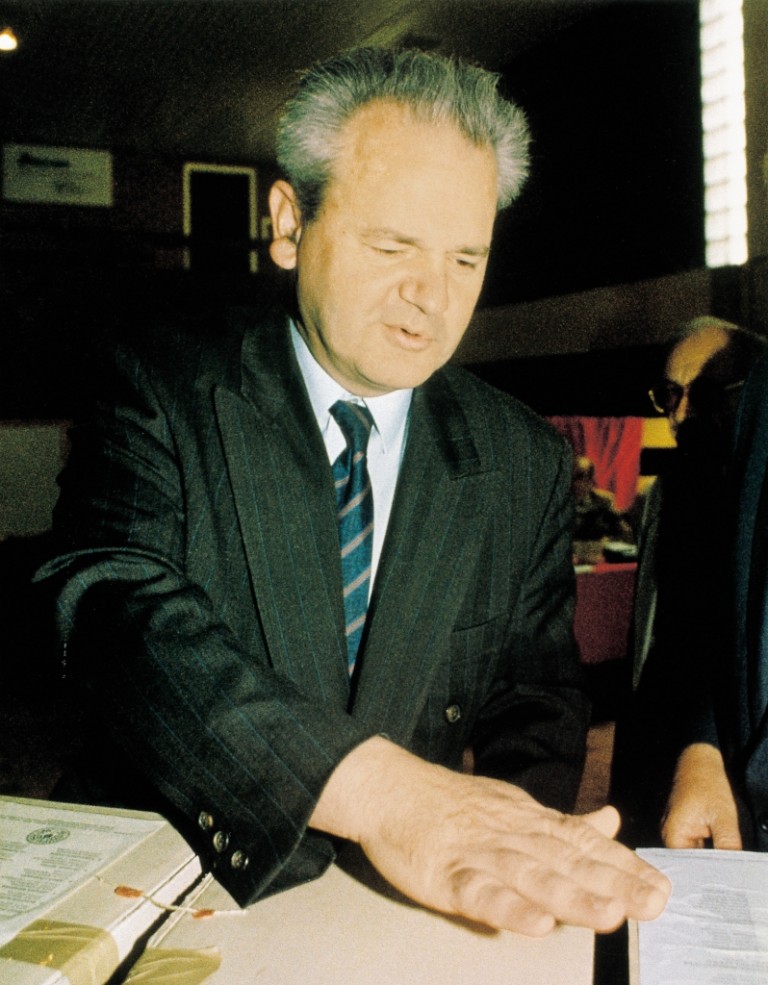 Seine großserbische-nationalistische Politik trug zum Zerfall des kommunistischen Jugoslawiens und den Kriegen in Kroatien und Bosnien-Herzegowina bei. 1995 unterzeichnete Milošević auf internationalen Druck hin das Friedensabkommen von Dayton. 1997 wurde er jugoslawischer Staatspräsident. In dieser Funktion trug er entscheidende Verantwortung für die Eskalation im Kosovokonflikt (1998/99). 1999 wurde Milošević vom Internationalen Kriegsverbrechertribunal für Jugoslawien in Den Haag angeklagt. 2000 musste er nach schweren Unruhen den Sieg des Oppositionskandidatens V. Koštunica bei den jugoslawischen Präsidentschaftswahlen anerkennen und verlor damit die politische Macht. 2001 wurde Milošević an das Kriegsverbrechertribunal in Den Haag ausgeliefert. Dort musste er sich seit 2002 in einem Prozess wegen Kriegsverbrechen, Verbrechen gegen die Menschlichkeit sowie Völkermord verantworten.