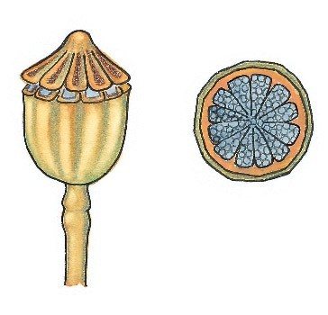 Klatschmohn: Die Kapsel sieht man wenn der Mohn verblüht ist.