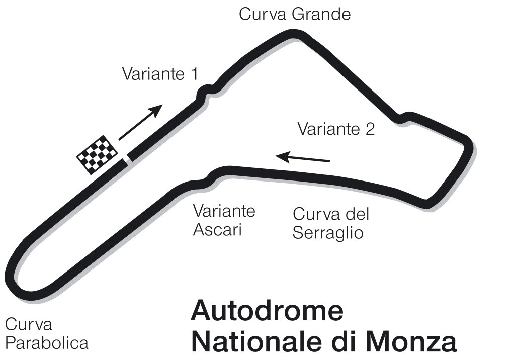Der Weltmeister Manuel Fangio aus Argentinien testet im August 1955 mit einem Mercedes die neue Rennstrecke in Monza.