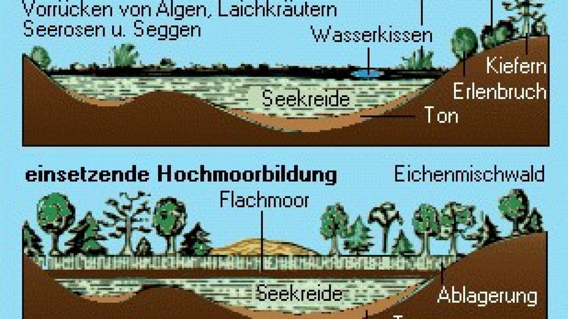 Das Hochmoor (Heide-, Torfmoor, Moos, Fenn, Fehn) verdankt seine Entstehung allein den atmosphärischen Niederschlägen, kann also nur in Gegenden mit reichlichen Niederschlägen und hoher Luftfeuchtigkeit sowie geringer Wärme und damit geringer Verdunstung auftreten. Das ist in Deutschland der Fall im westlichen Teil des Norddeutschen Tieflands, im Alpenvorland und in der Bergwaldstufe der Mittelgebirge; ansonsten finden sich ausgedehnte Moorlandschaften in den Flachländern Nord- und Westeuropas (Finnland, Irland) und Nordasiens (Sibirien). Die fehlende Verbindung zum Grundwasser bedingt, dass das Wasser in den Hochmooren extrem nährstoff- und kalkarm ist. Entsprechend ist die Pflanzenwelt dürftig und arm an Arten; die Hauptrolle spielen Torfmoose (Sphagnum-Arten), daneben Wollgräser (Eriophorum-Arten), Seggen (Carex-Arten) und verschiedene Zwergsträucher, vor allem aus der Familie der Heidegewächse (Ericaceae). Man unterscheidet zwischen Versumpfungs- und Verlandungshochmoor. Erstere können unmittelbar aus Flachmooren hervorgehen; häufiger sind versumpfte Wälder auf nährstoffarmen Böden Ausgangspunkt. Die Torfmoose bilden dichte, Wasser aufsaugende Polsterdecken, die an der Oberfläche weiterwachsen, während die tieferen Schichten absterben und in Torf übergehen; die Oberfläche des Moors wird dadurch immer höher und bildet die typische konvexe Wölbung. – Sonderformen sind die Hangmoore der Gebirge und die Kammmoore auf den Kämmen und Wasserscheiden der Mittelgebirge. In der Wärmezeit von 8000 bis 5500 v. Chr. setzte verstärkte Torfbildung ein, besonders an den Nordseeküsten. Es entstanden ombrogene Hochmoore und in der jüngeren Hochmoorzeit 800–600 v. Chr. bis heute Weißtorfbildungen. – Hoch- und Flachmoore wurden durch Kultivierung und Torfabbau bis auf wenige Reste zerstört (besonders in der Bundesrepublik Deutschland); umfangreiche Schutzmaßnahmen dieser wichtigen Lebensräume für seltene Pflanzen und Tiere sind deshalb notwendig.