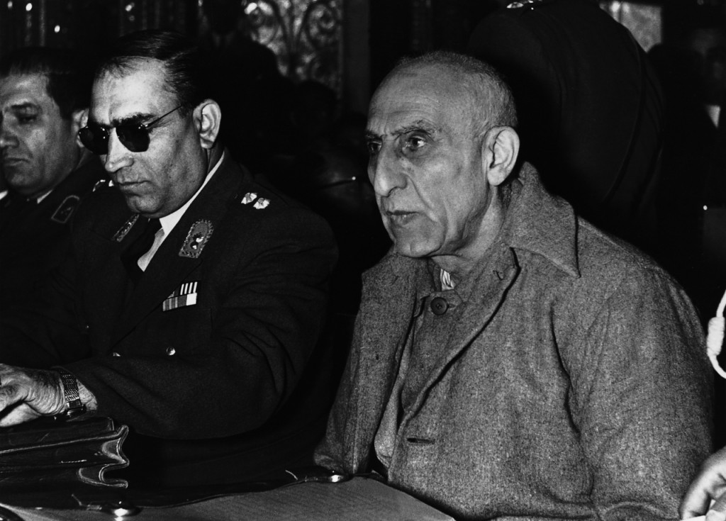 Der frühere iranische Premierminister Mohammad Mossadegh (rechts) während einer Gerichtsverhandlung.