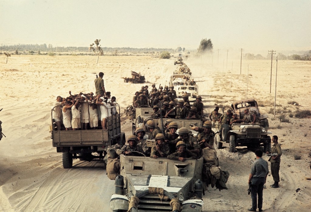 Im 1. israelisch-arabischen Krieg 1948/49 konnte Israel seinen Gebietsstand über die im UN-Teilungsbeschluss vorgesehenen Grenzen hinaus erweitern. Der Krieg wurde durch Waffenstillstände, nicht jedoch durch einen Friedensbeschluss beendet. Jordanien annektierte das Westjordanland, das nach dem UN-Plan den Hauptteil des arabischen Palästinenserstaates bilden sollte. Seit Mitte der 1950er Jahre wuchs die Zahl der arabischen Guerillaaktionen.