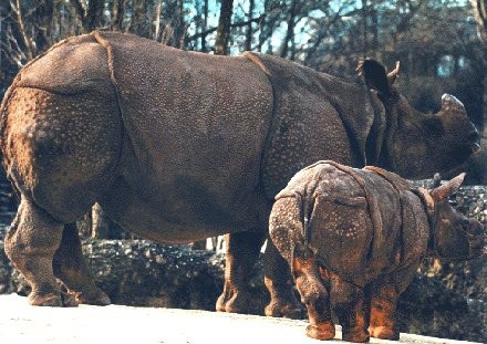 Panzernashorn (Rhinoceros unicornis) mit Jungtier