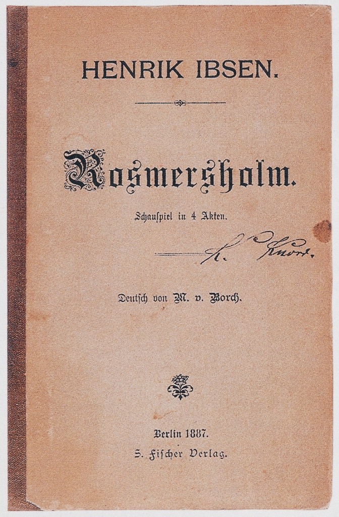 Umschlag des Werkes »Rosmersholm« von Ibsen aus dem Jahr 1887.